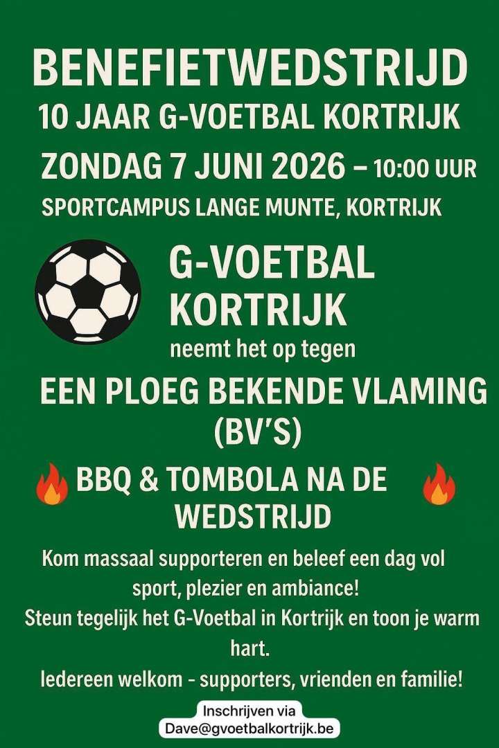 10 jaar G-voetbal Kortrijk Noteer dit nu reeds in uw agenda : zondag 7 juni 2026 10 jaar G-voetbal Kortrijk